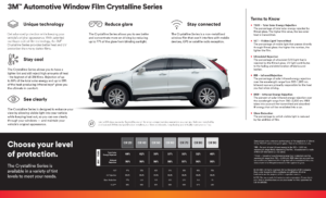 تتميز أفلام Crystalline بتركيب فريد يصل إلى 200 طبقة من تقنية النانو، ما يسمح بعزل الحرارة بكفاءة عالية دون الحاجة إلى درجات تظليل داكنة، مع الحفاظ على المظهر الأصلي للسيارة.