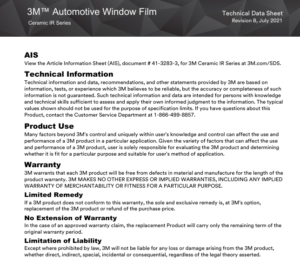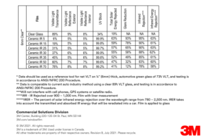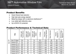 أفلام السيراميك من 3M مصممة لتقديم أداء متوازن وهو ما توضحه البيانات الفنية الخاصة بها.